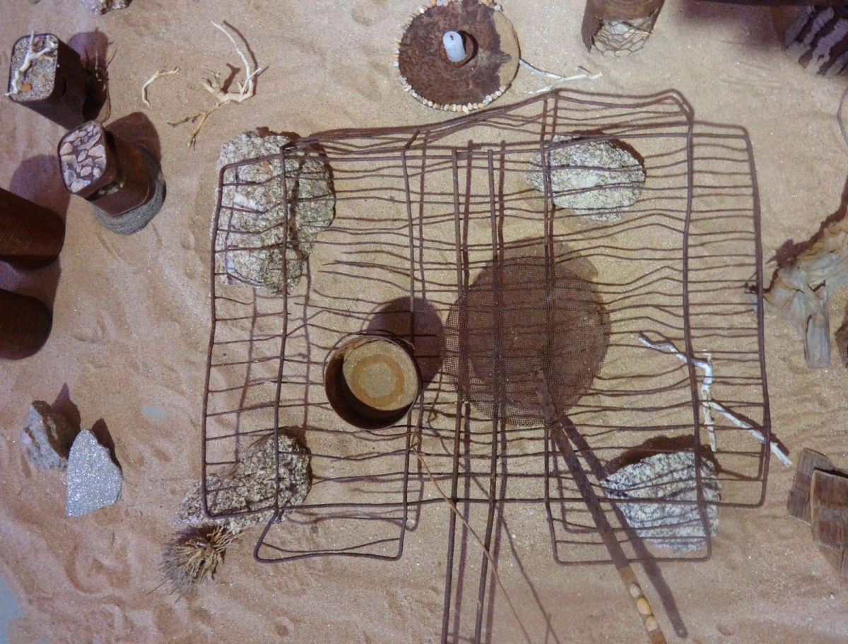DSC01647 Published 10. Dezember 2015 at 1600 × 1215 Installation „Fireplace“, 1,50 m x 1,50 m, objects from scrapyard in Namib dessert and Namib dessert sand, 2015