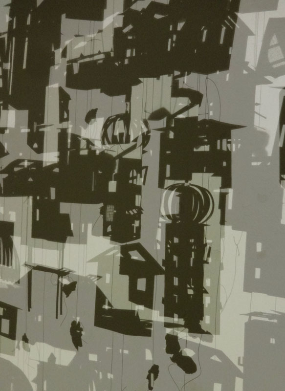 DSC08623 Kopie Published 10. Dezember 2015 at 583 × 800 Babel 2015″, Installation/Mobile 2015. Paper, String, Light. and Stories about house to Babel (with Author reading/Video documentation
