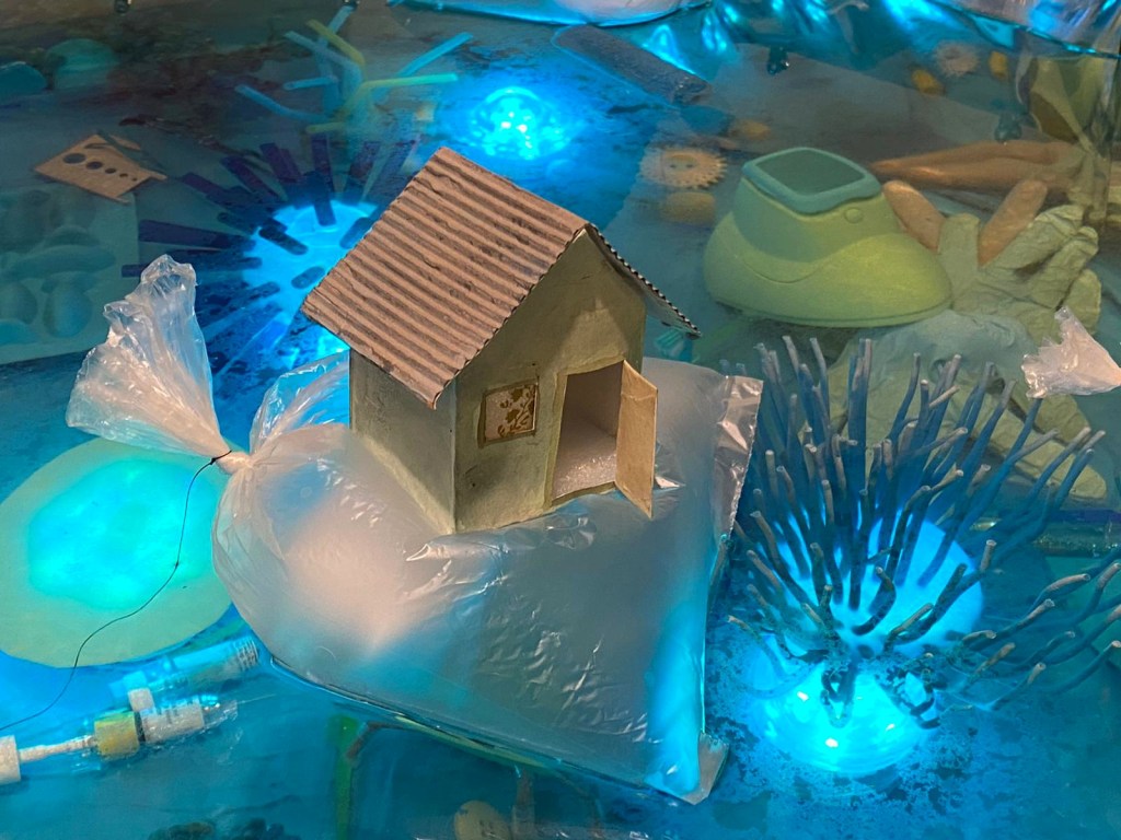Babel 2015″, Installation/Mobile 2015. Paper, String, Light. and Stories about house to Babel (with Author reading/Video documentation