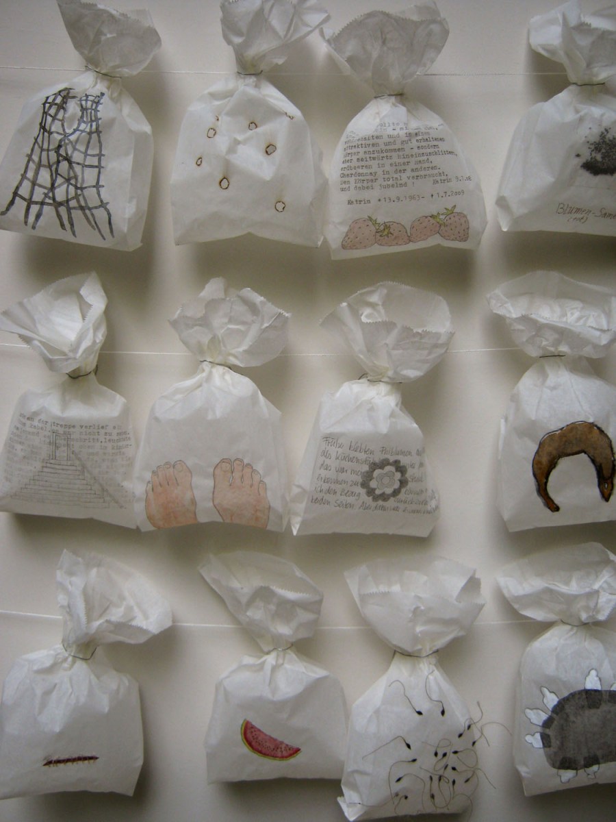 luckenwaldehochformat Published 10. Dezember 2015 at 1125 × 1500 „Taegliches Brot / Staff of Life“ , mixed media on paper bags, ongoing project since 2005